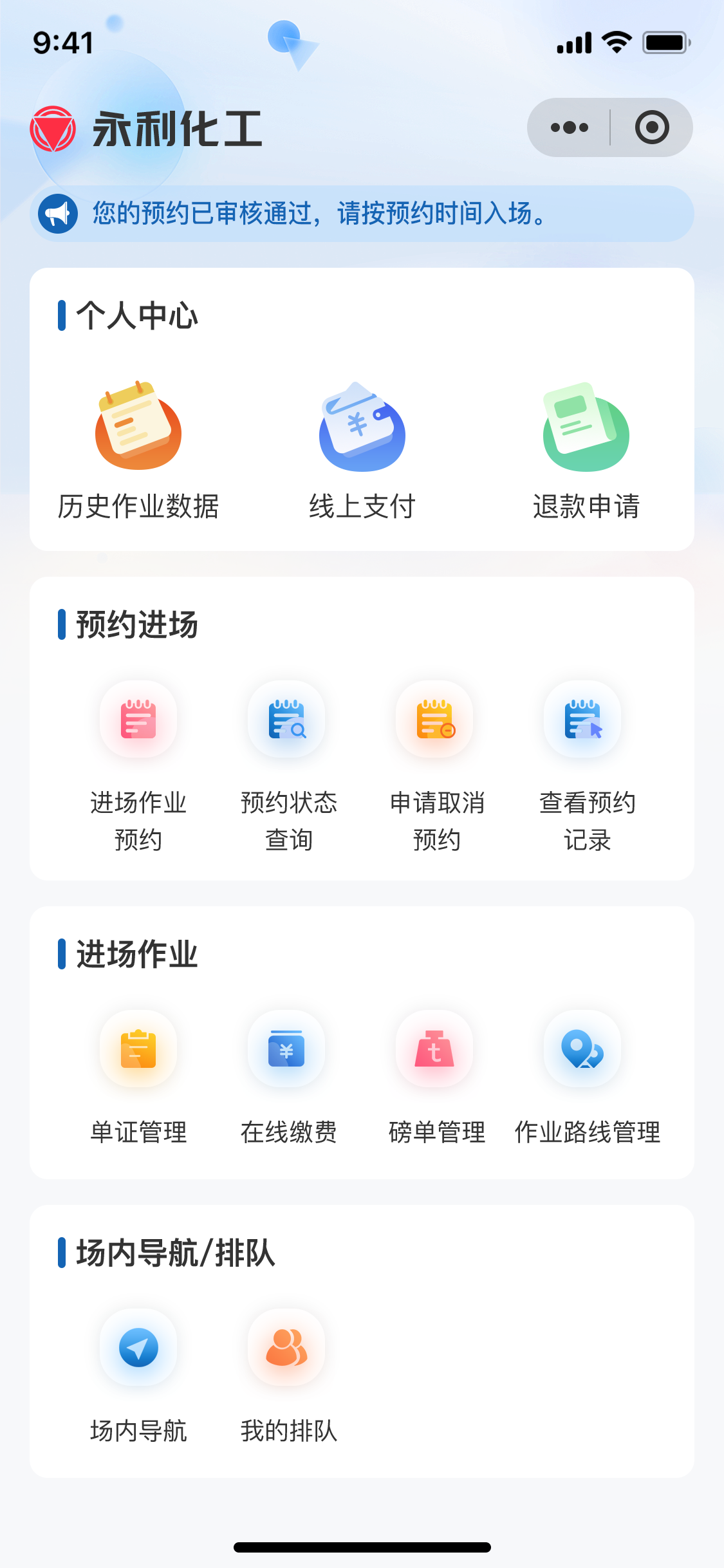 华体网页版(司机端)APP,天津渤化华体网页版股份有限公司业务预约系统的重要组成部分,主要为货物采购与销售业务提供车辆预约服务,为司机提供了优质便捷的体验。 司机在华体网页版(司机端)APP上对订单进行在线预约,到达企业区域后可进行申请排队进场操作,场区设备识别车辆后自动放行车辆,完成作业后,司机可在app上查询历史作业数据。